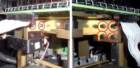 - To adjust the gap between the magnet and the heat blocks, loosen the 8 screws by ½ turn, with the 3/32 inch Allen wrench. There are 4 Allen screws on each side, as shown in picture below.